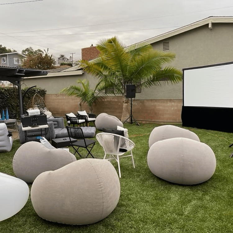- 16′ Screen — $574 · Up to 75 guests · Perfect for intimate backyard movie nights or birthday parties.